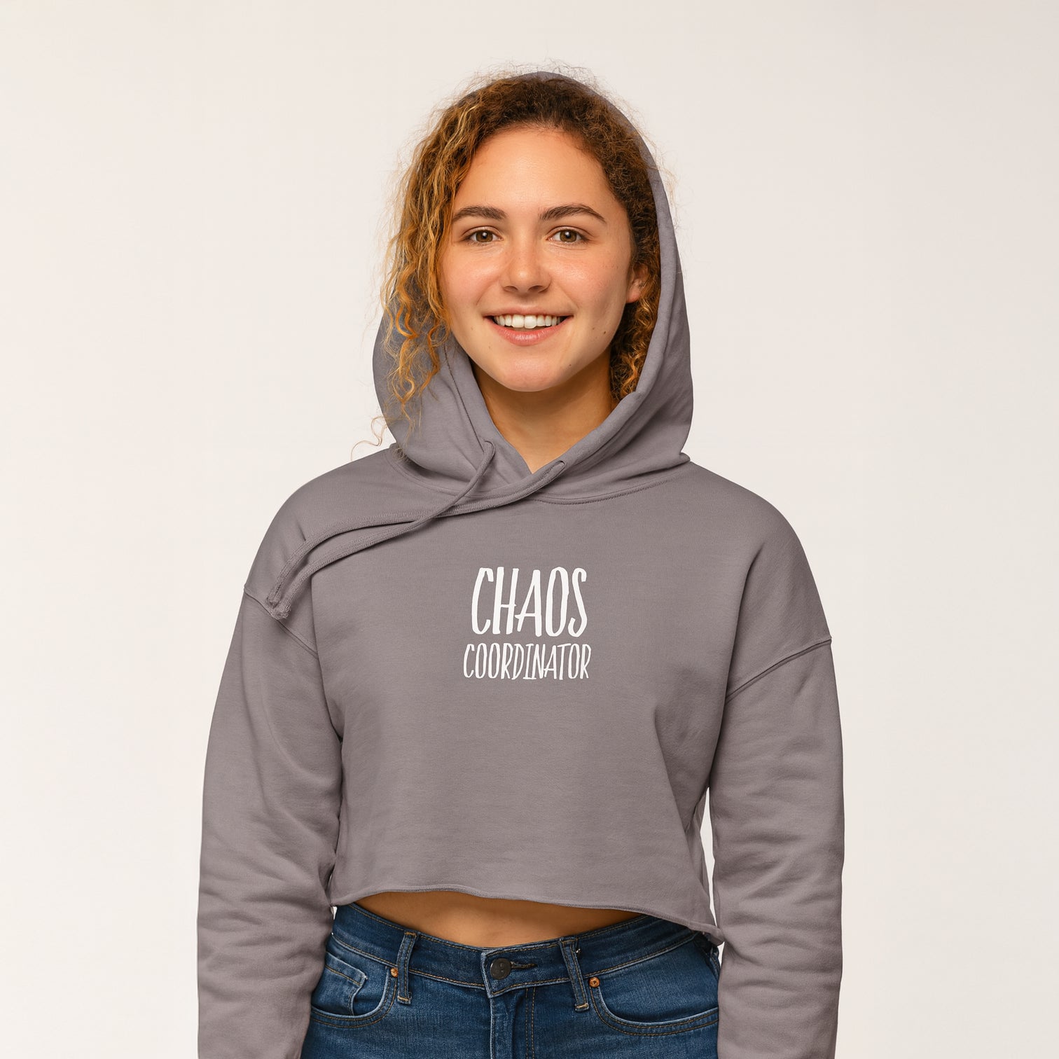 Introducing our stylish Women's Cropped Hoodie, designed to elevate your casual wardrobe with a touch of fun and comfort. This hoodie exudes a relaxed vibe, perfect for lounging or heading out with friends. The cropped design with a raw hem gives it a trendy edge, making it an ideal choice for fashion-forward women. Suitable for cozy weekends or casual outings, this hoodie is also a fantastic gift for birthdays, holidays, or any celebration where you want to spread joy and laughter. Whether you're a 'chaos coordinator' or just love a lighthearted style, this hoodie is for you!